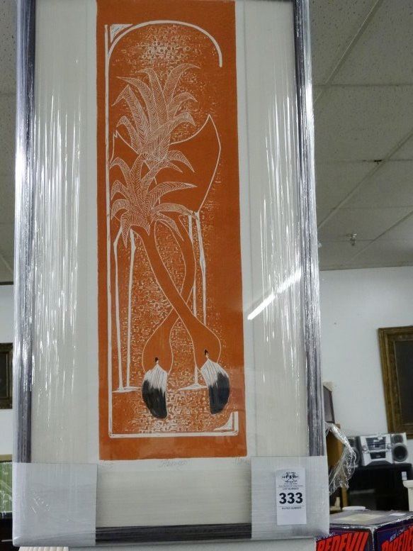 Framed Lithograph "Flamingos" by Hari Hockey