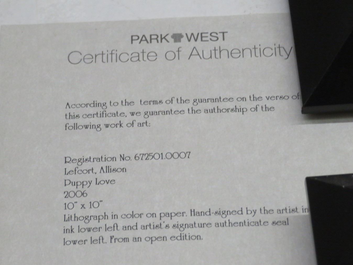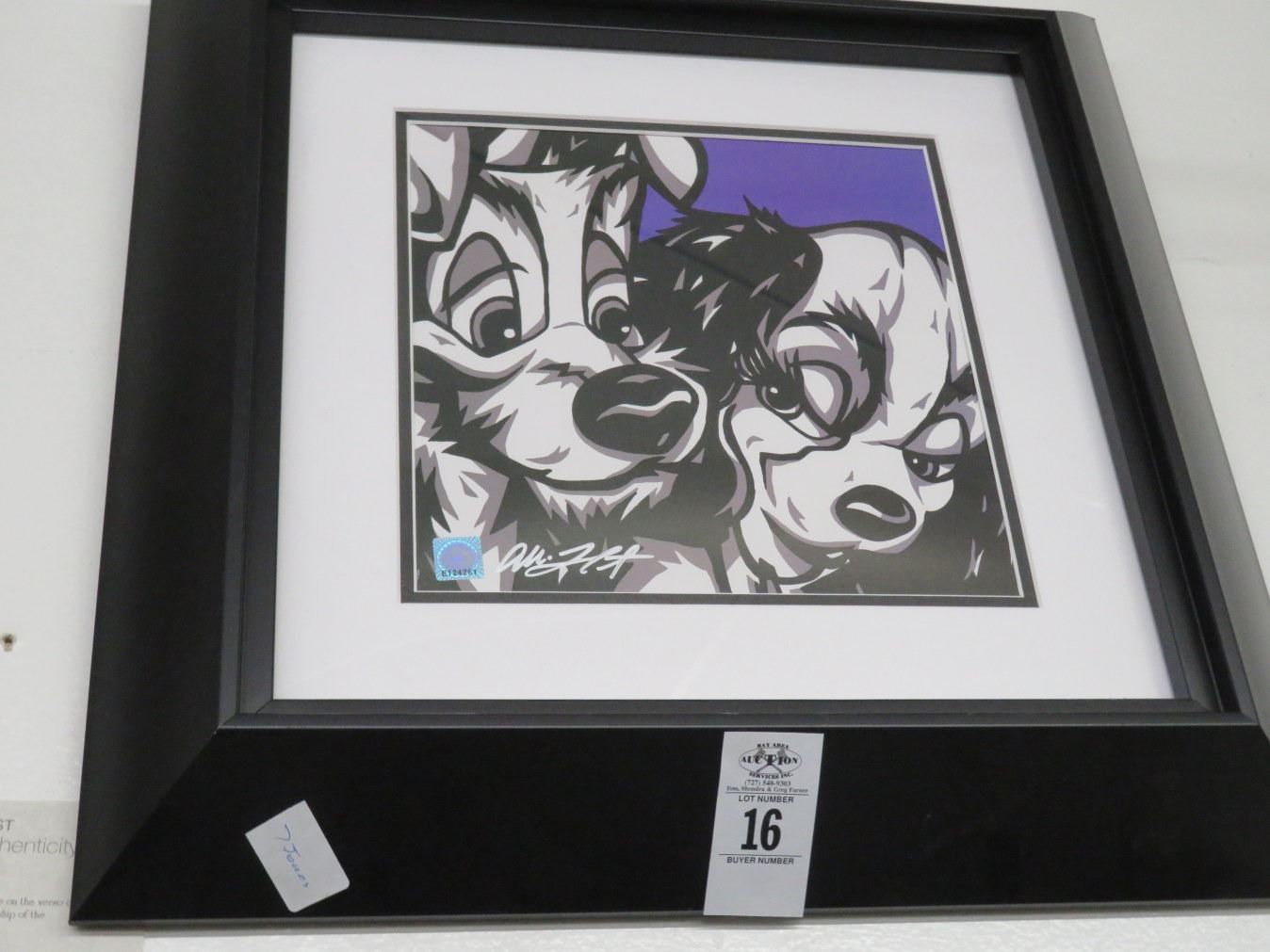 Framed Lithograph Lady and The Tramp - Signed Alison Stilwell - 10 x 10