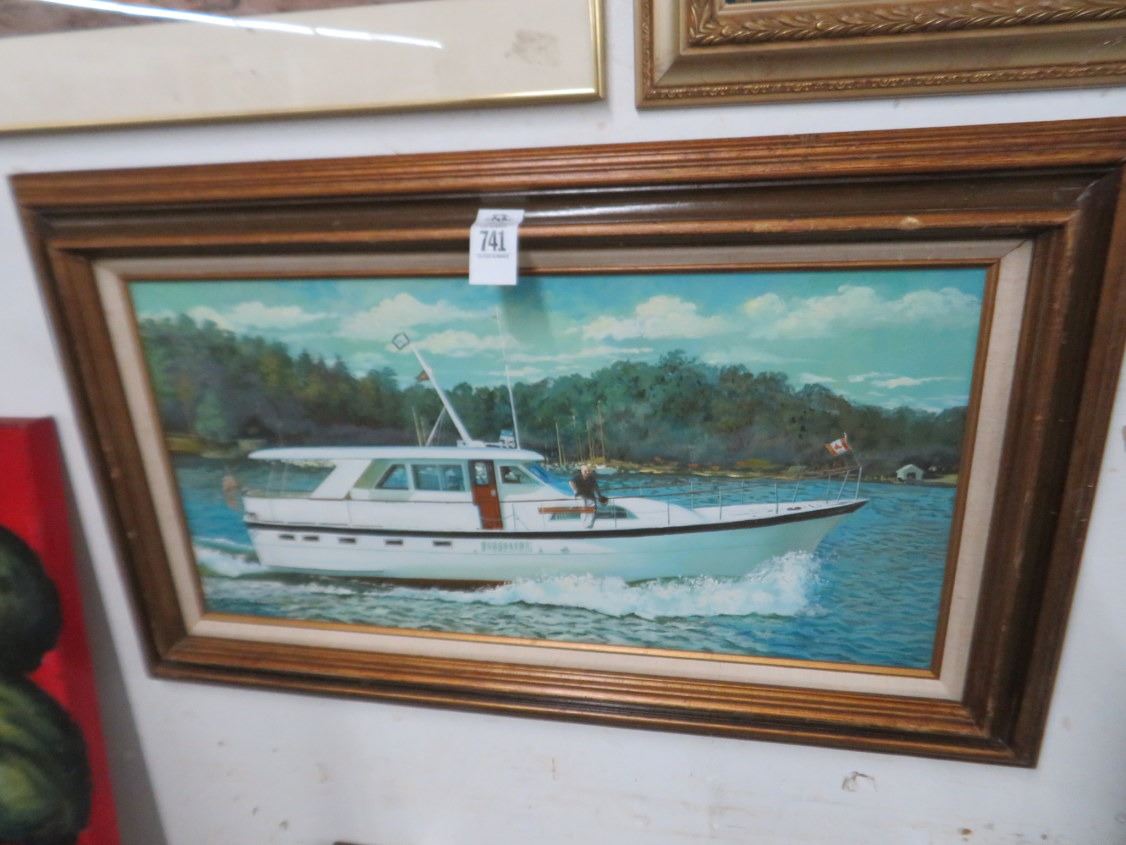 Framed Man On Yacht Scene Oil On Canvas By Thomeyers - 22" x 24"