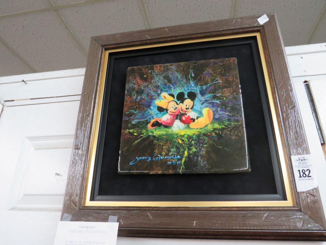 Framed Mickey & Minnie Wall Art on Tile Artist Signed James Coleman