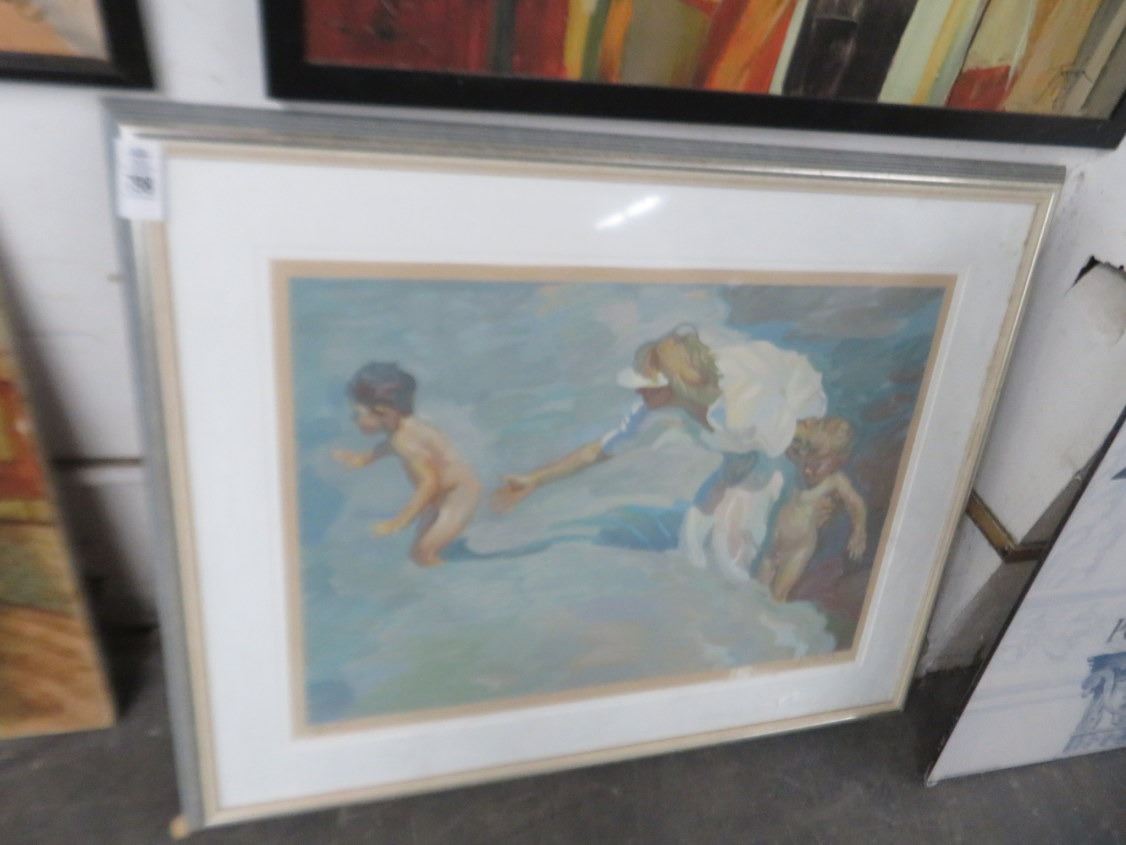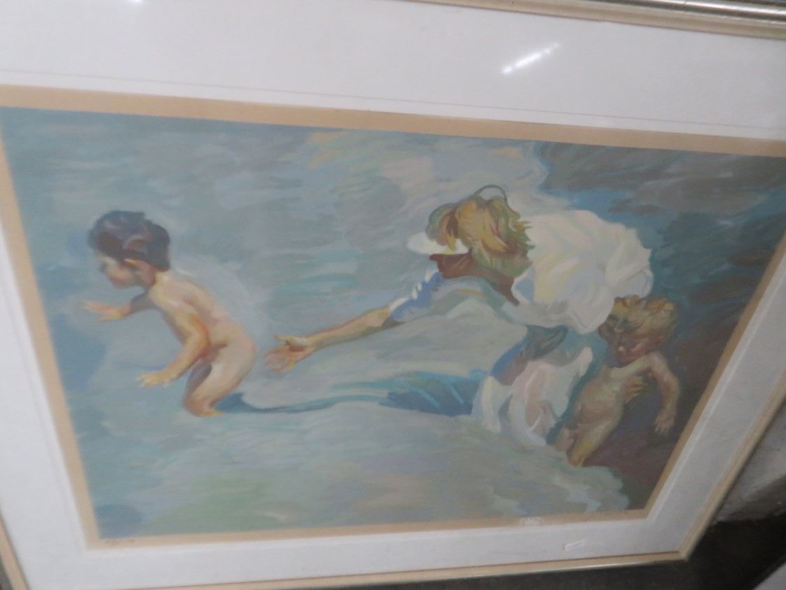 Framed Mother & Children Beach Print by Jatac - 47" x 38"