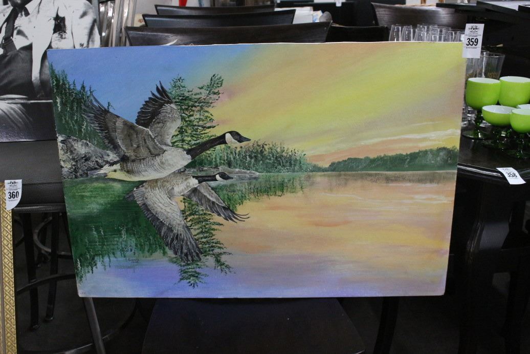 Framed Oil On Board Geese on Lake Signed Garcia - 20" X 30"