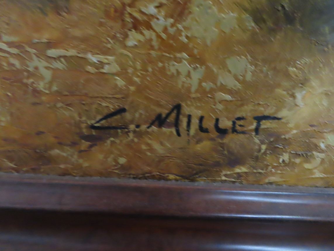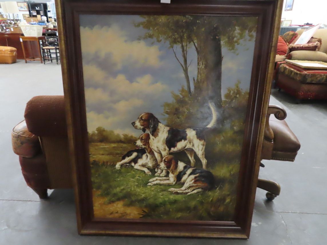Framed Oil On Canvas Bird Dogs Artist C. Millet - 46" x 36"