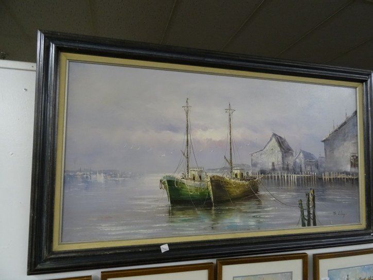 Framed Oil On Canvas "Boats" Signed Marc Chegall