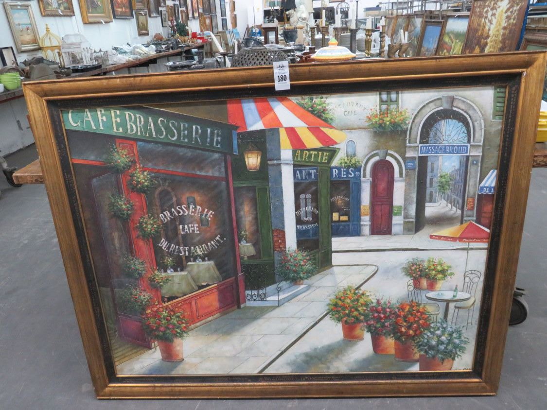 Framed Oil On Canvas Café Street Scene - 36 X 48