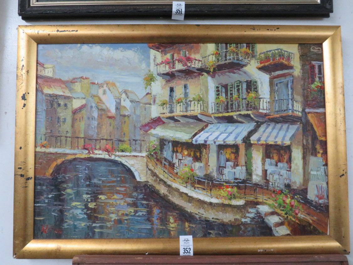 Framed Oil On Canvas Canal Scene - 24 X 36