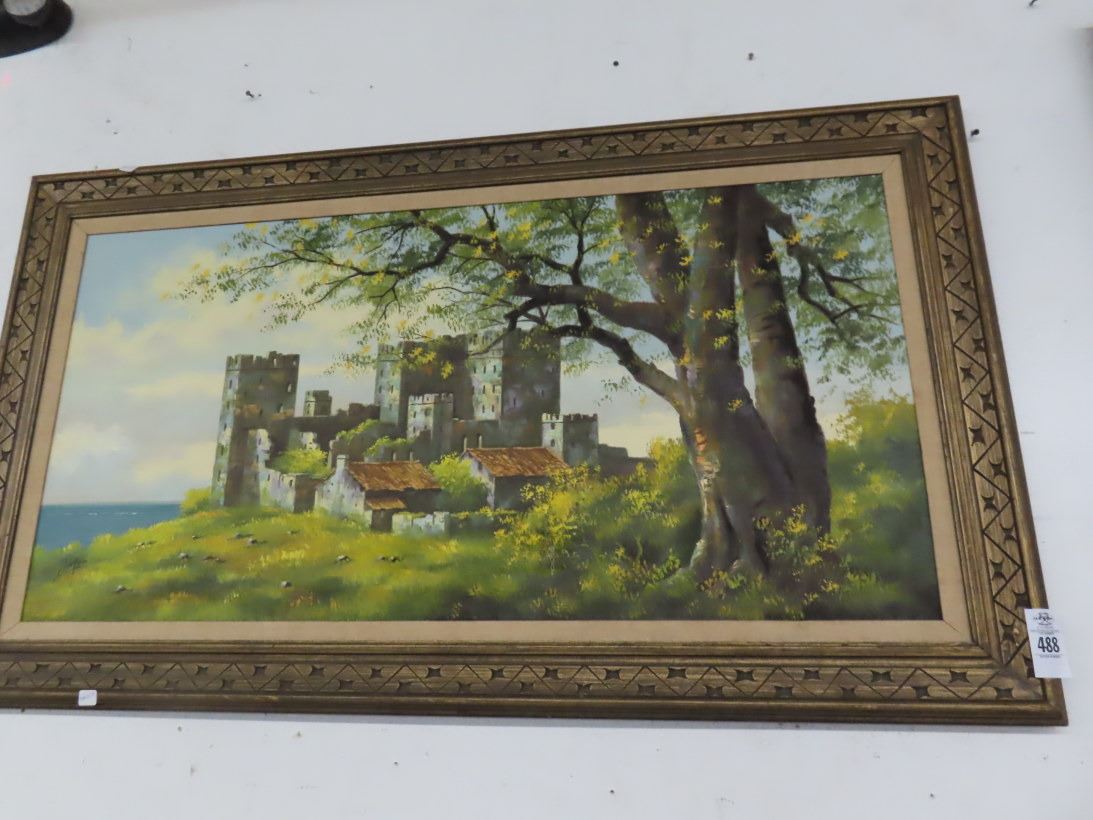 Framed Oil On Canvas Castle Ruins Wall Art - Artist Signed
