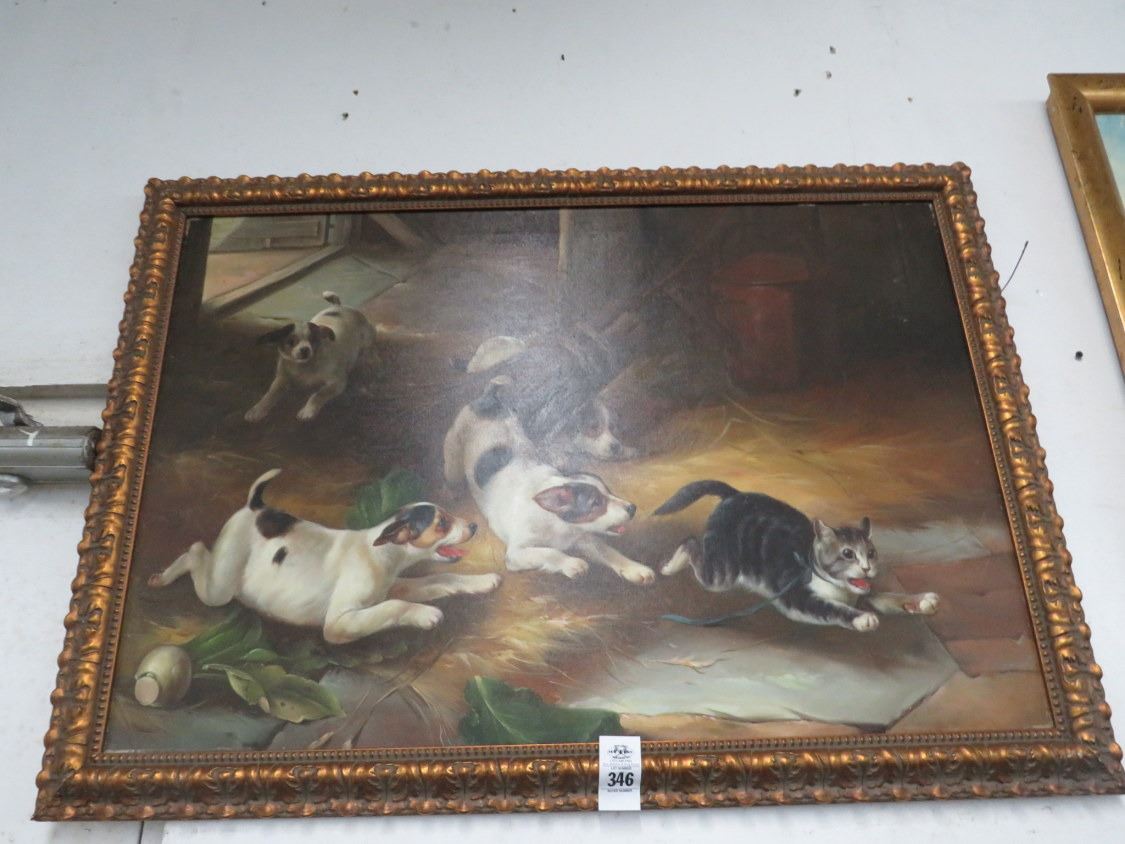 Framed Oil On Canvas Cat Chase - 24 X 36