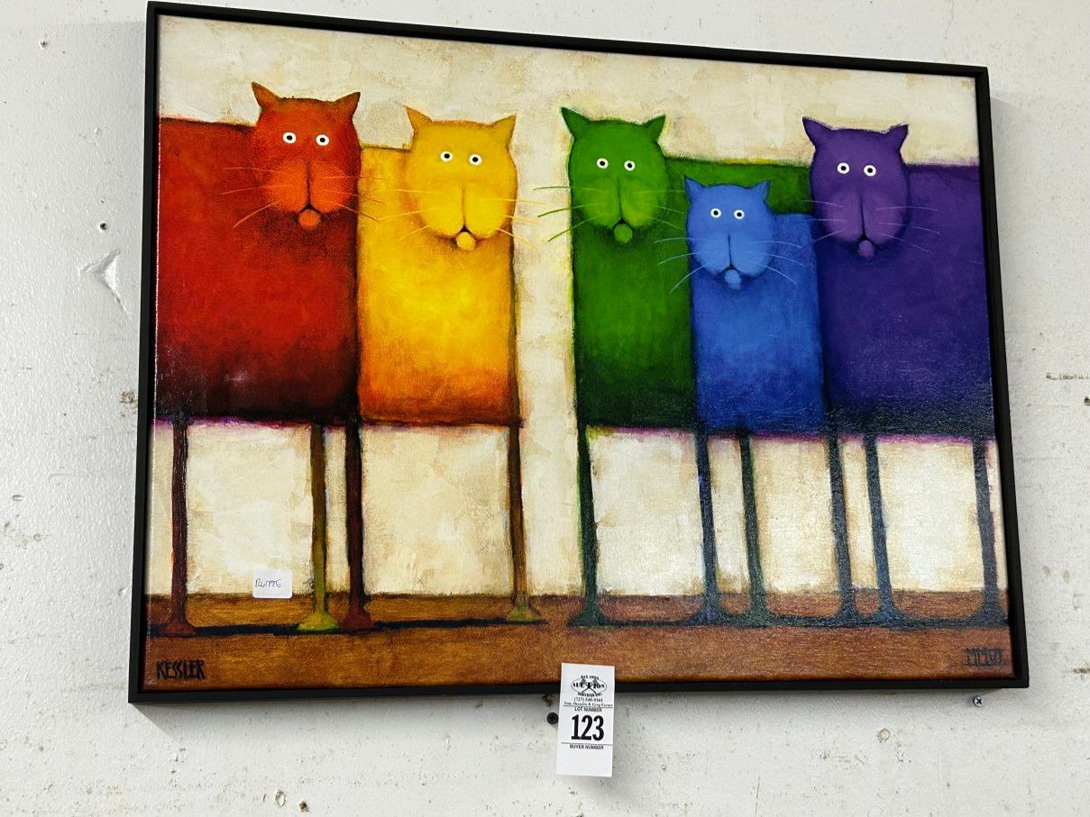 Framed Oil On Canvas Cat Wall Art Signed Kesler