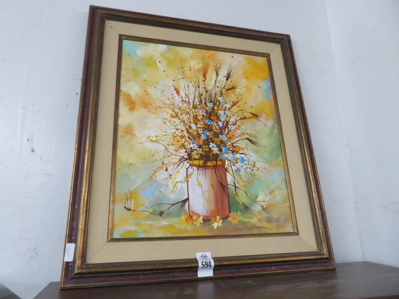 Framed Oil On Canvas Floral Scene Artist Ondre - 28" x 31"