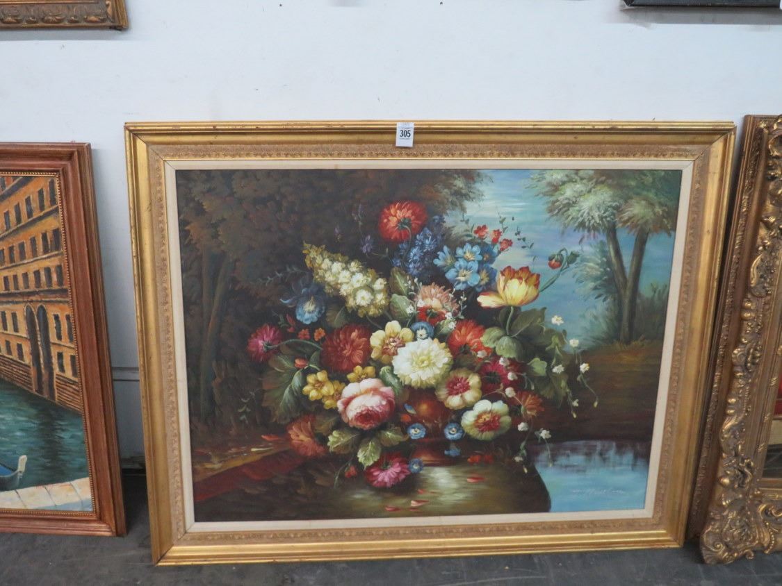 Framed Oil On Canvas Floral Wall Art - 40 X 48