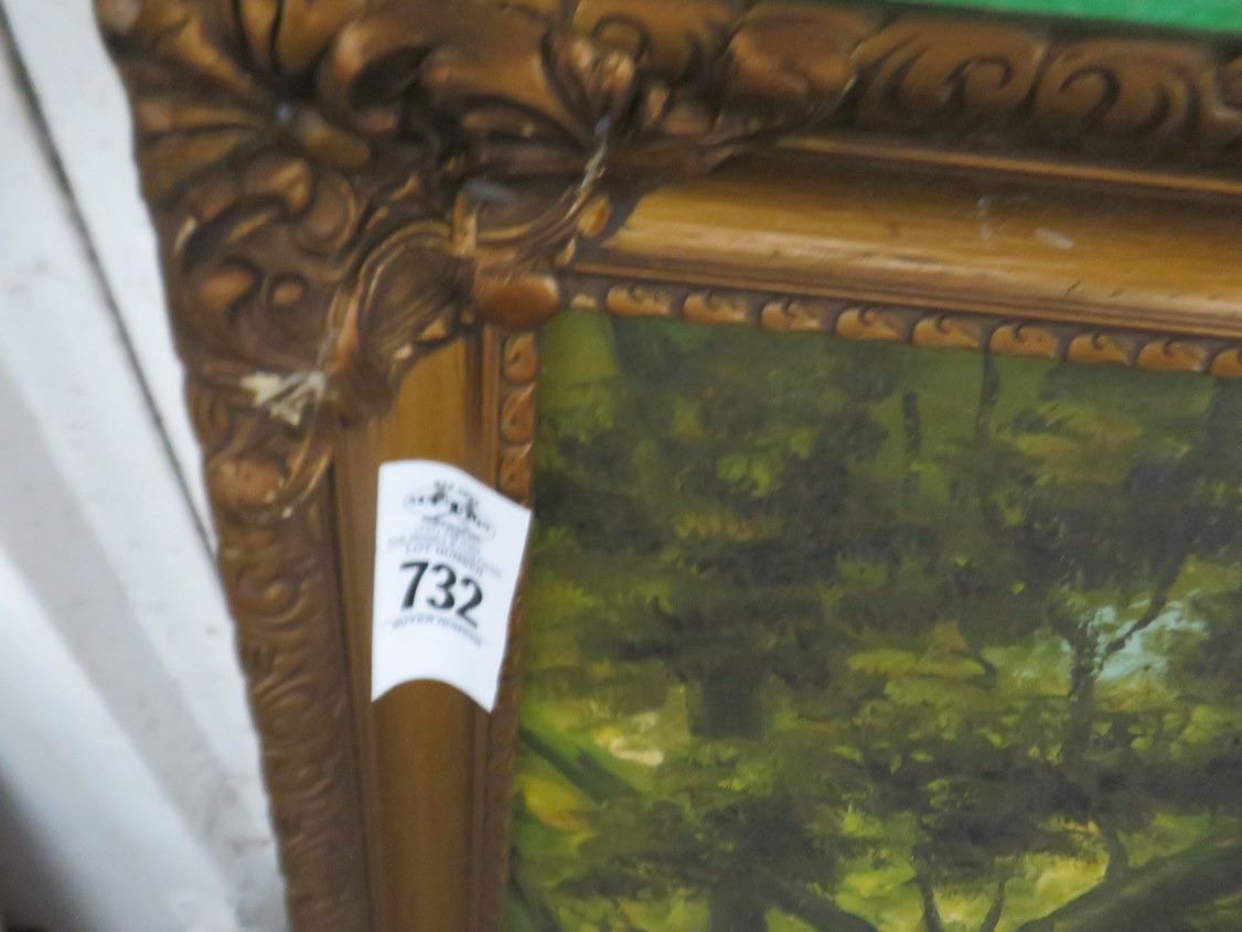 Framed Oil On Canvas Forest Scene - 29" x 40"