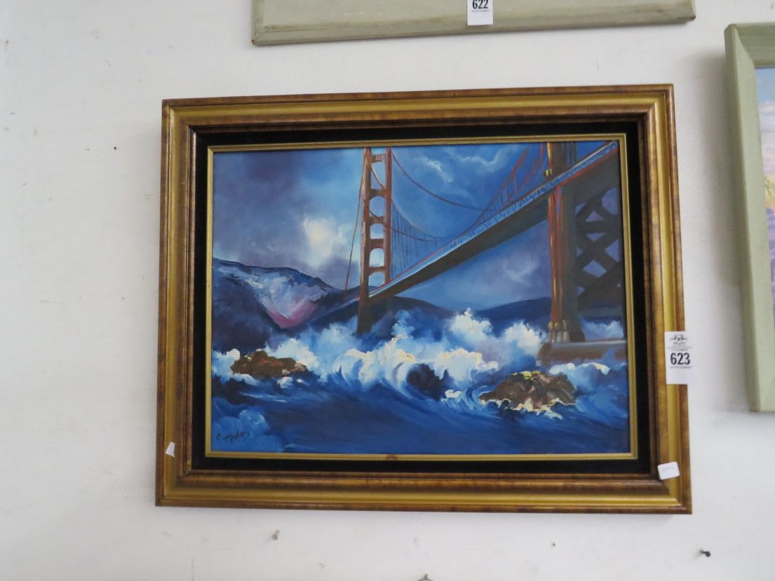 Framed Oil On Canvas Golden Gate Bridge - Signed Makres - 20 x 24