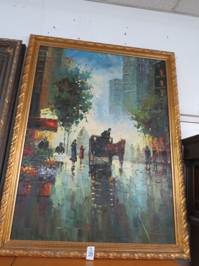 Framed Oil On Canvas Horse and Carriage Street Scene - 40 X 48