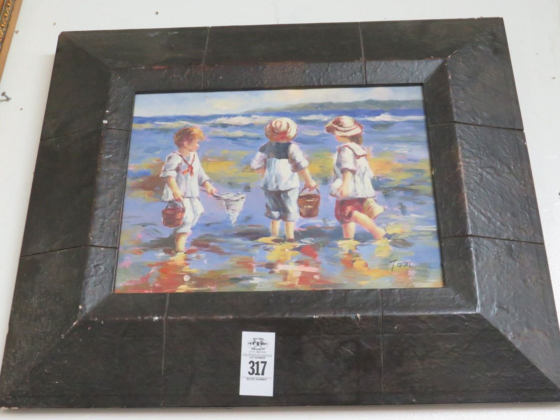 Framed Oil On Canvas Kids ON Beach - 20 X 24