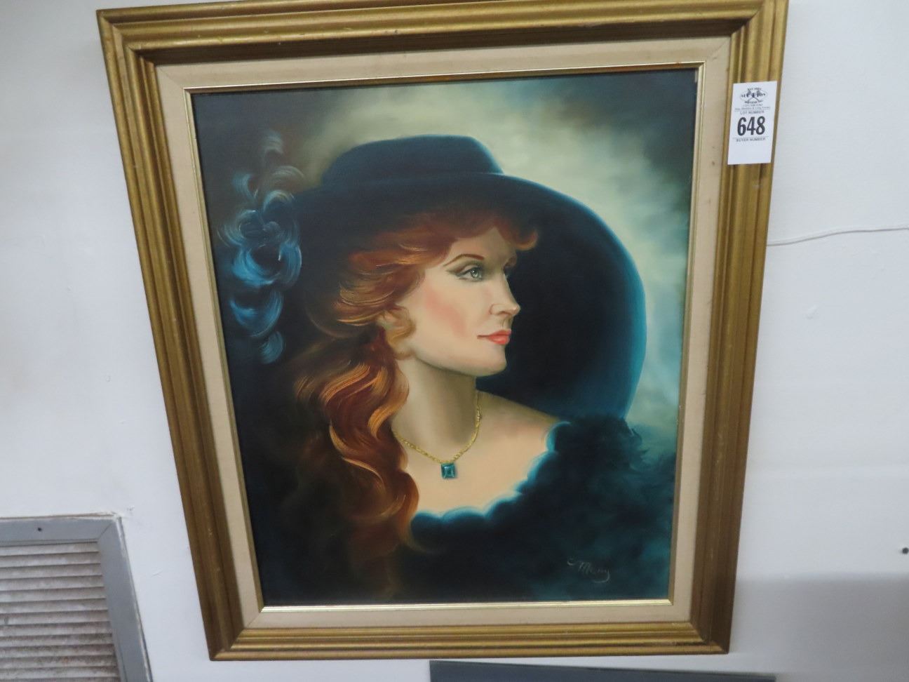 Framed Oil On Canvas Lady In Hat Signed Mary - 26" x 30"