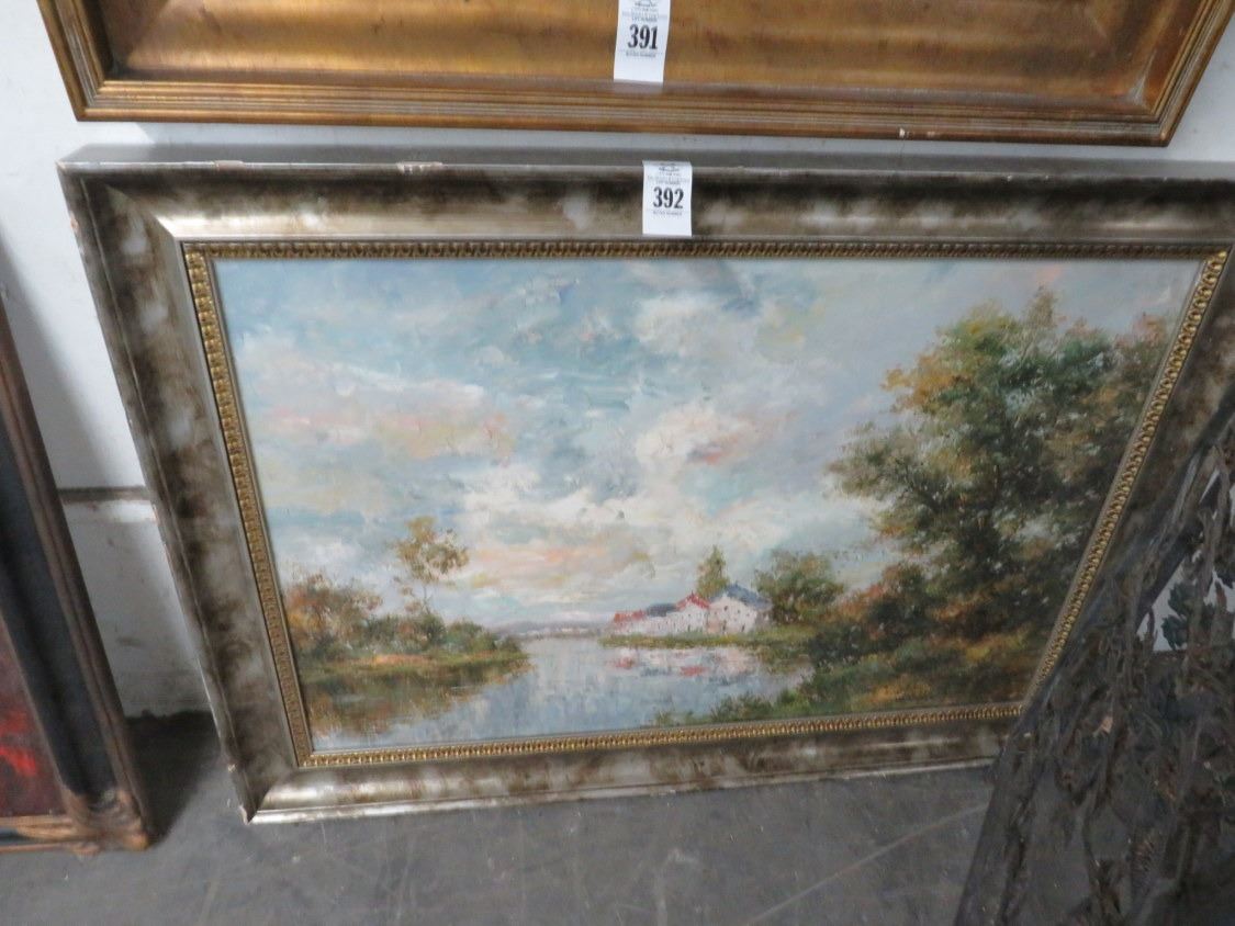 Framed Oil On Canvas Lake Scene - 30 X 36