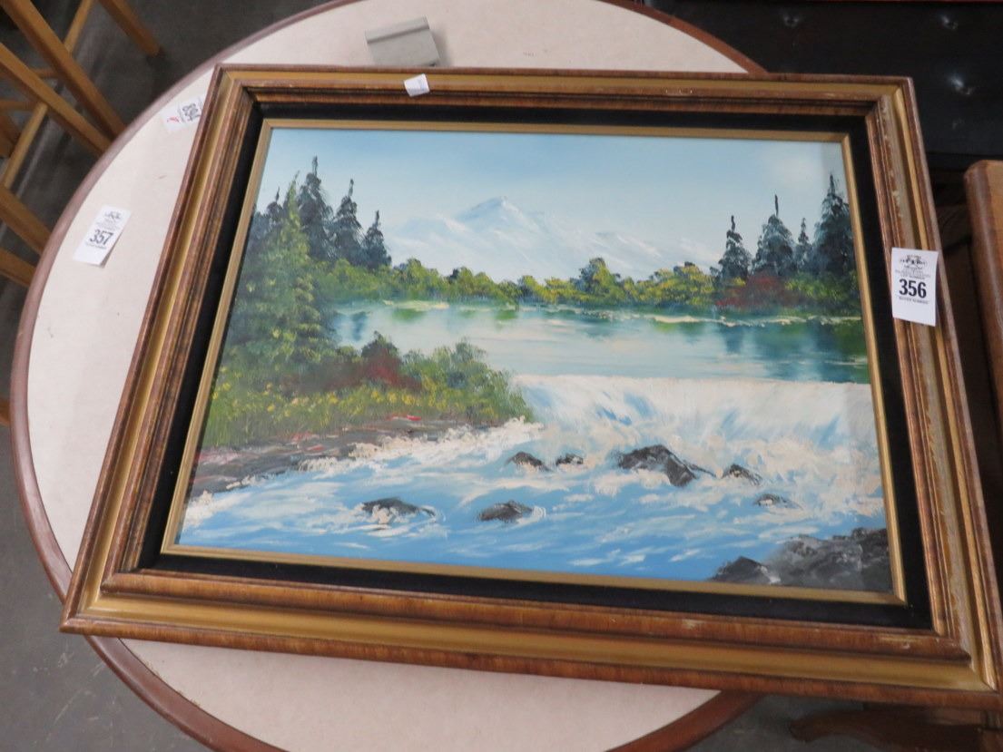Framed Oil On Canvas Mountain River Scene - 18 x 24
