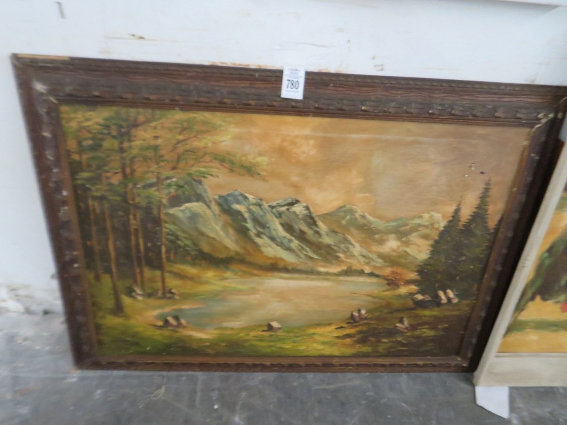 Framed Oil On Canvas Mountain Scene - 42" xx 30"