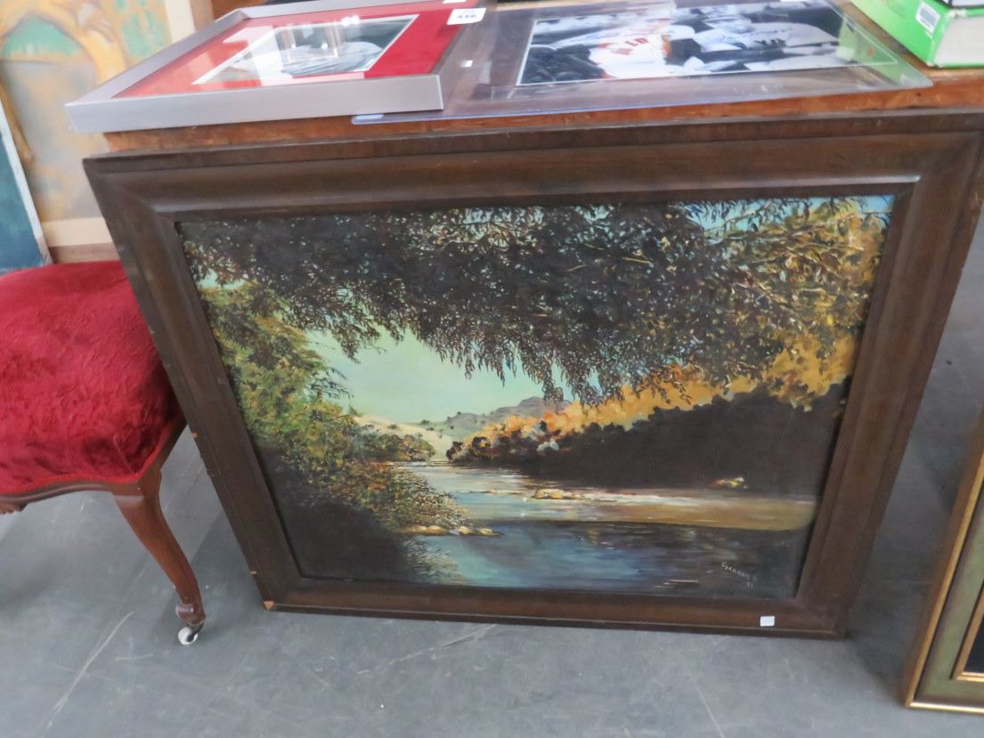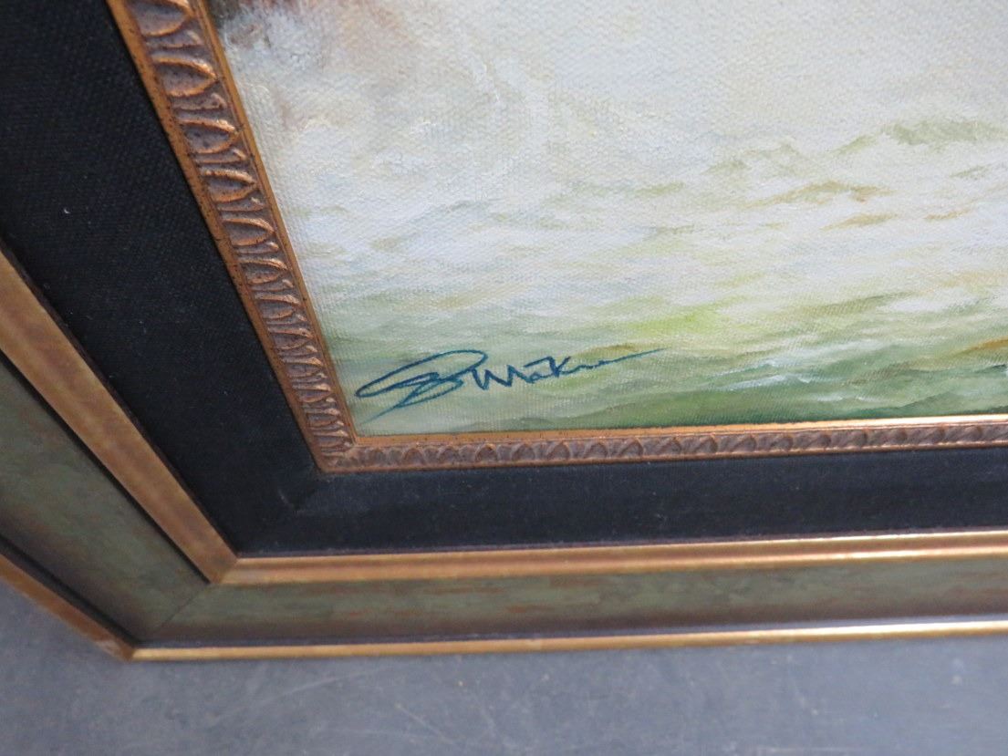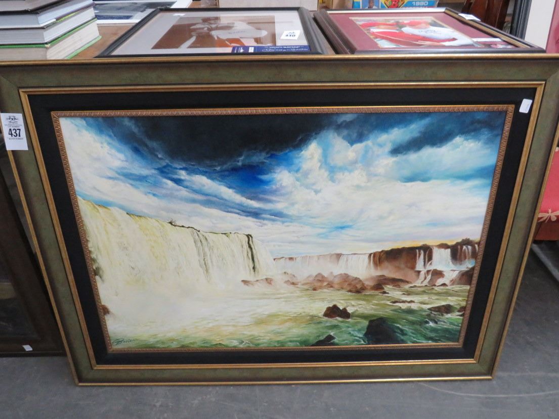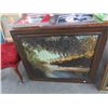 Framed Oil On Canvas Niagra Falls Signed Makres, Framed River Scene Signed Makres