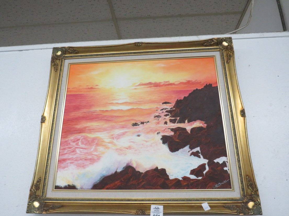 Framed Oil On Canvas Seascape - Artist Signed - 24 x 24
