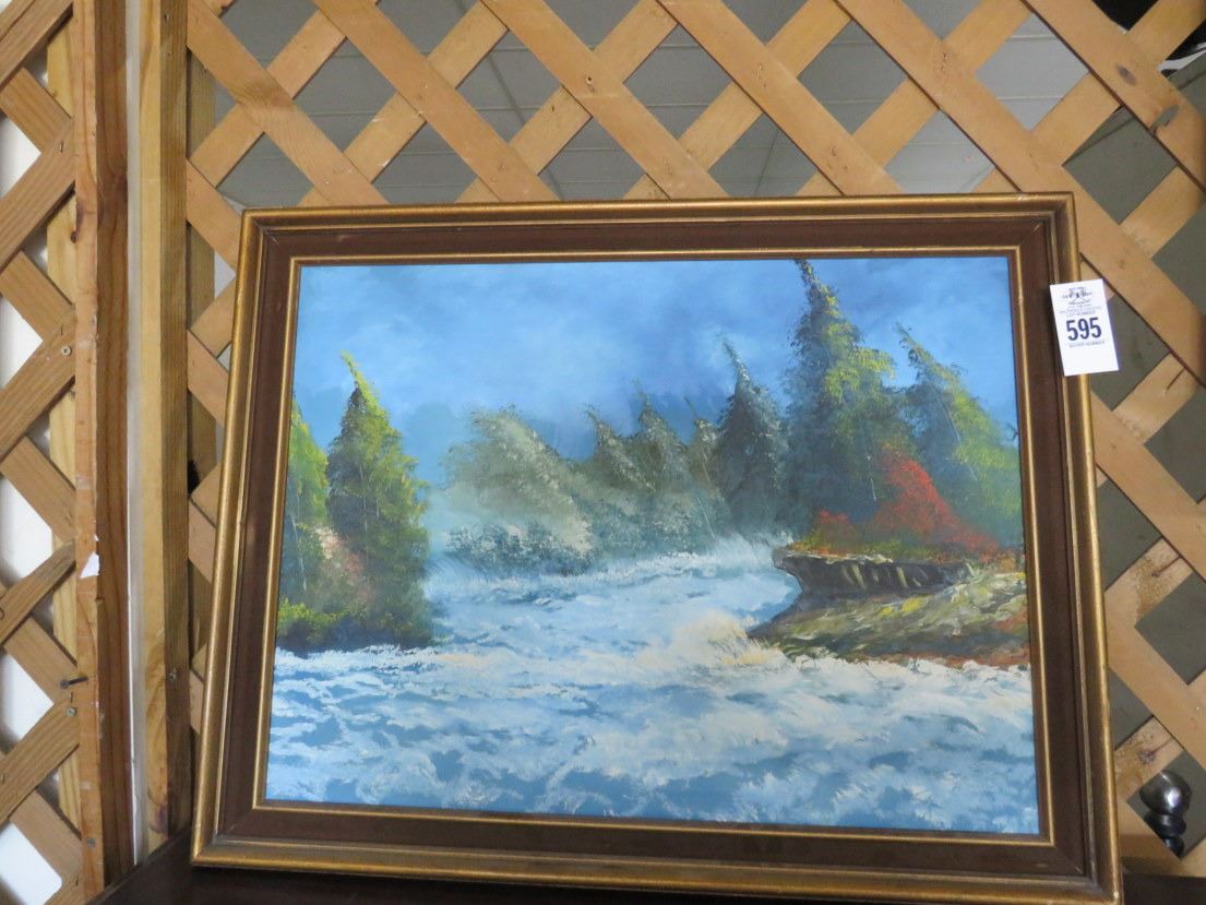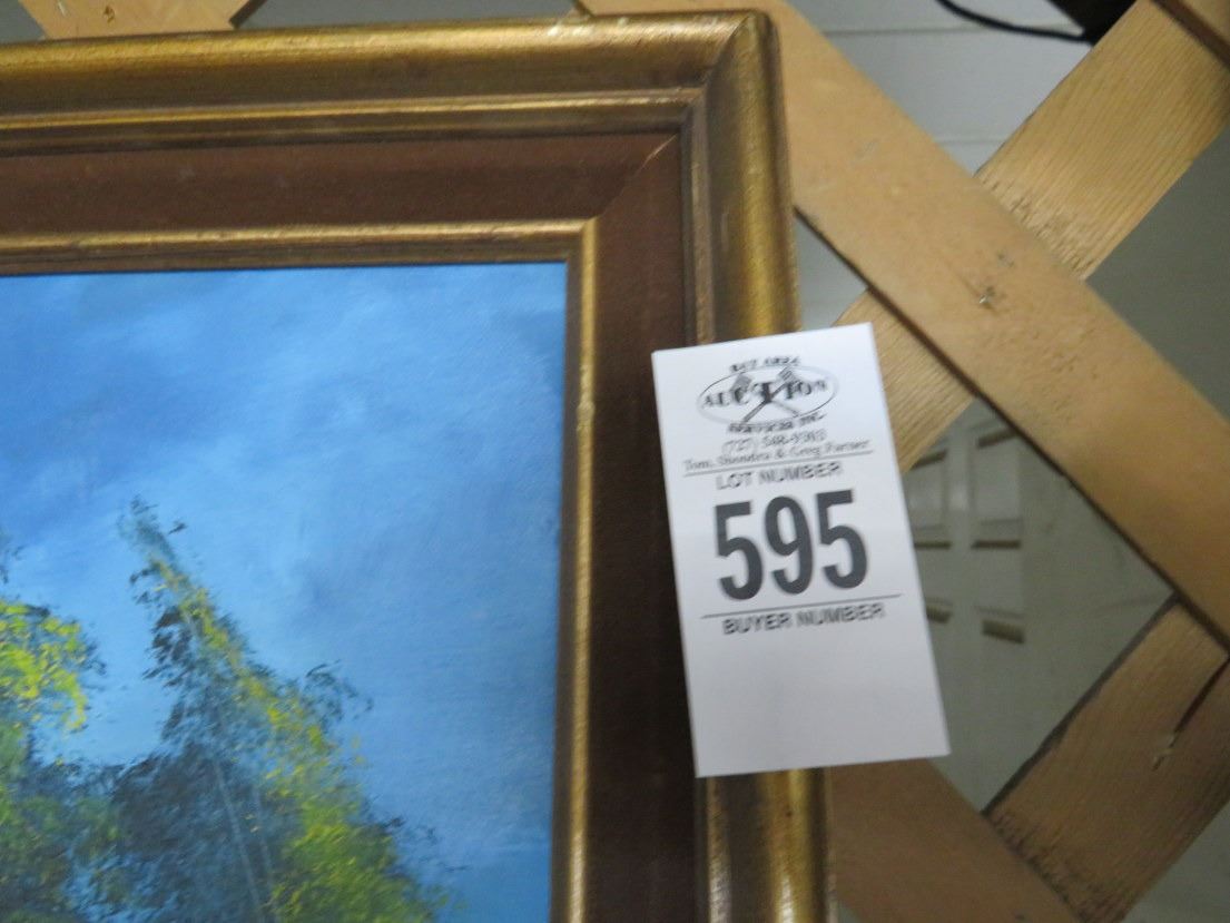 Framed Oil On Canvas Seascape/Forest Scene - 2