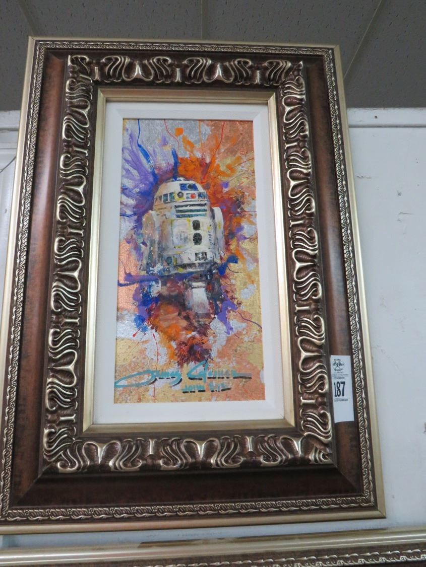 Framed Oil On Canvas Star Wars R2D2 - Signed James Coleman w/COA - 6 x 15