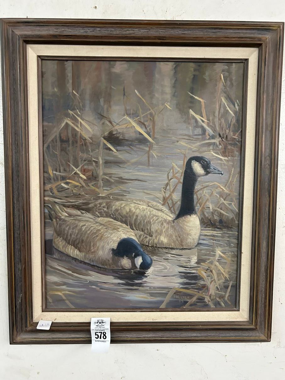 Framed Oil On Canvas Swans Wall Art - Signed Erlicker - 20" X 30"