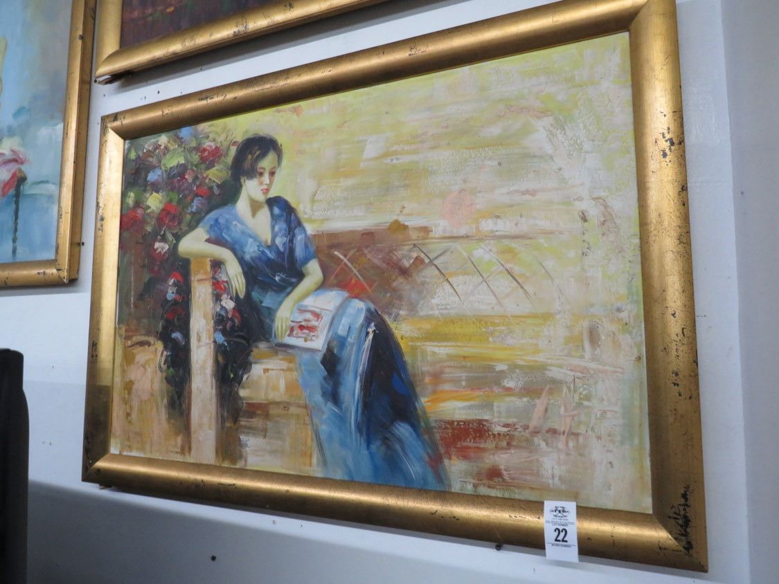 Framed Oil On Canvas Woman Reading - 24 X 30