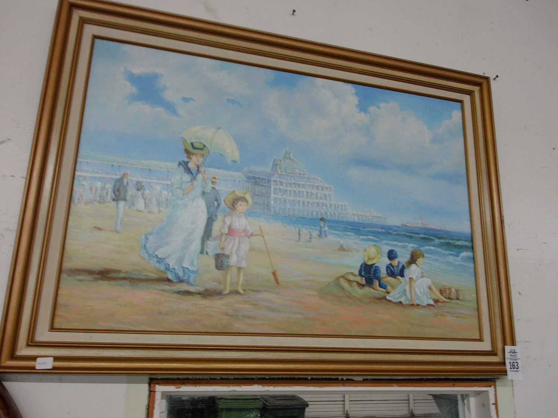Framed Oil on Canvas Beach Day Artist Signed - 30 X 40