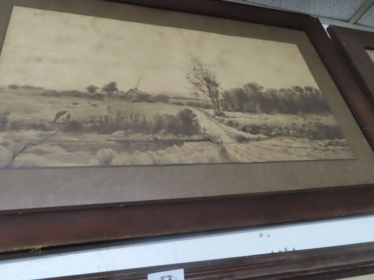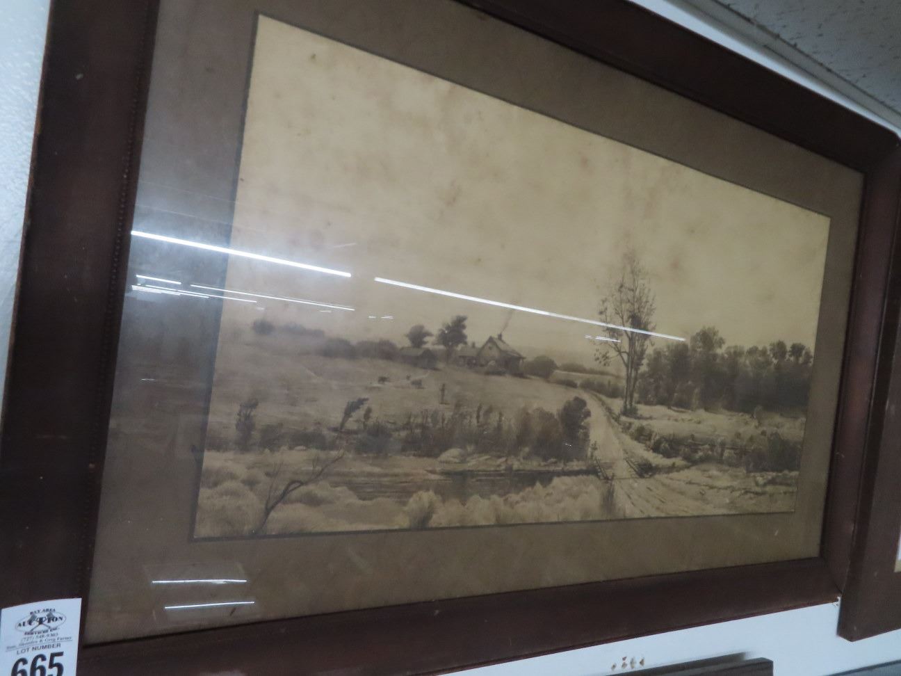 Framed Old Farm Scene - 22" x 34"