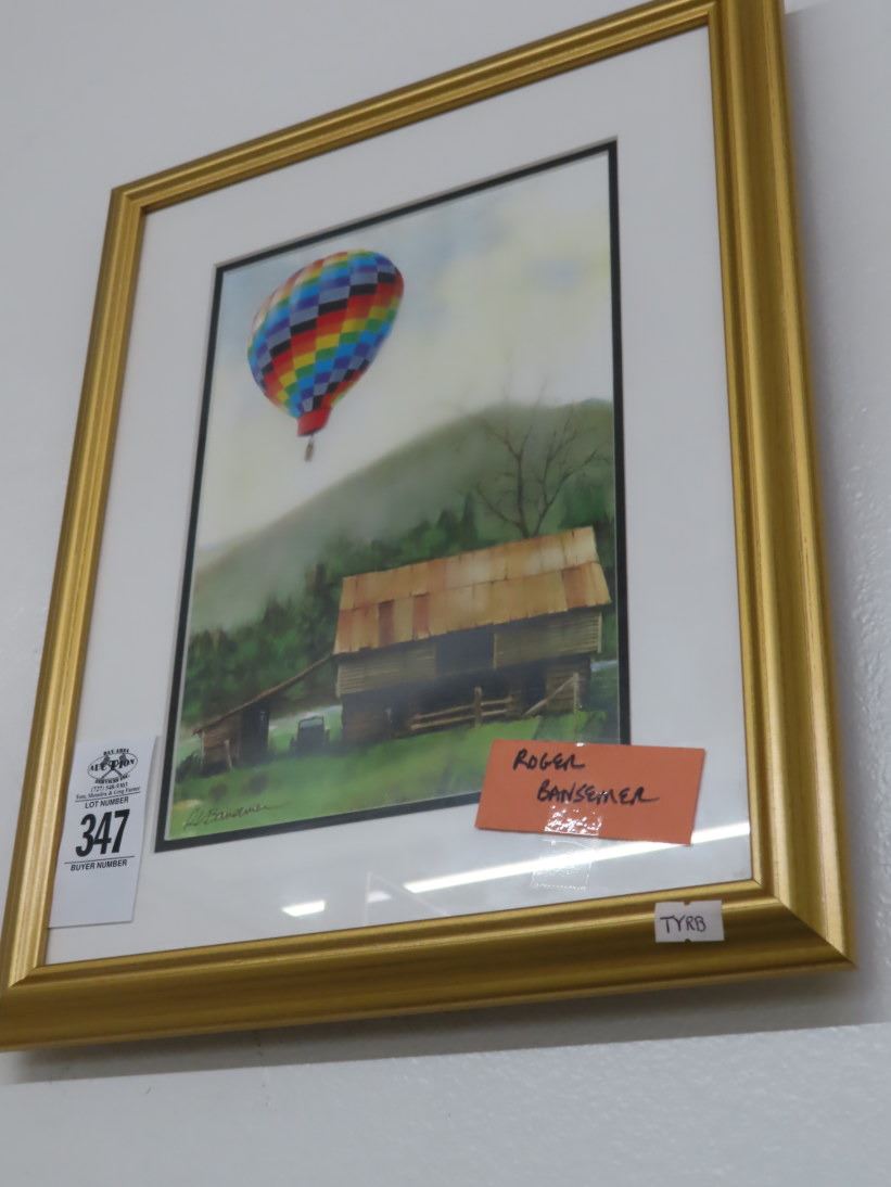 Framed Photo of Balloon Flying Over Barn Signed Bansemer