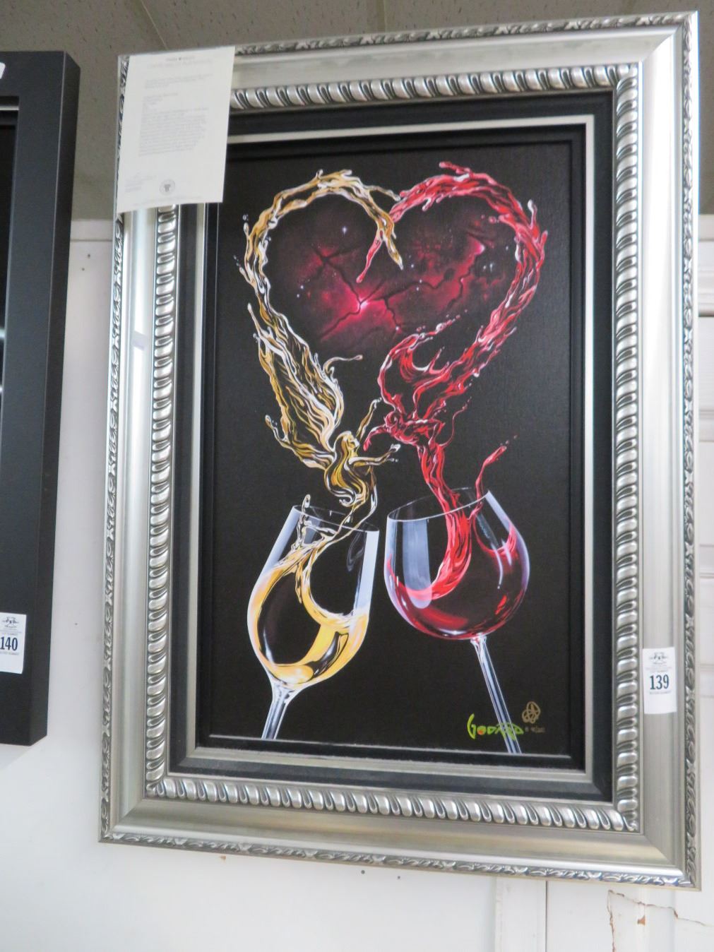 Framed Print On Canvas Wine Glasses - Signed Godard - 24 x 36