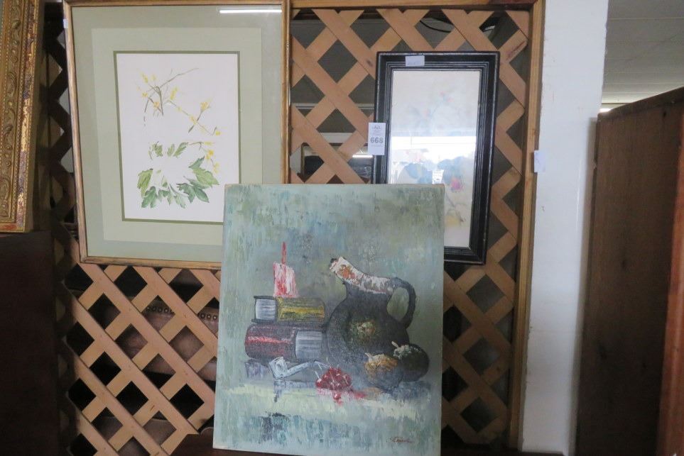 Framed Prints (2) And Oil On Canvas
