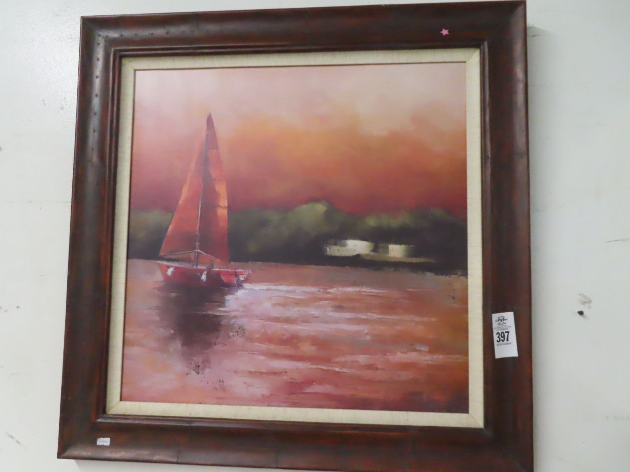 Framed Sailboat Print - 32" x 32" - Surf Oil On Canvas (2)