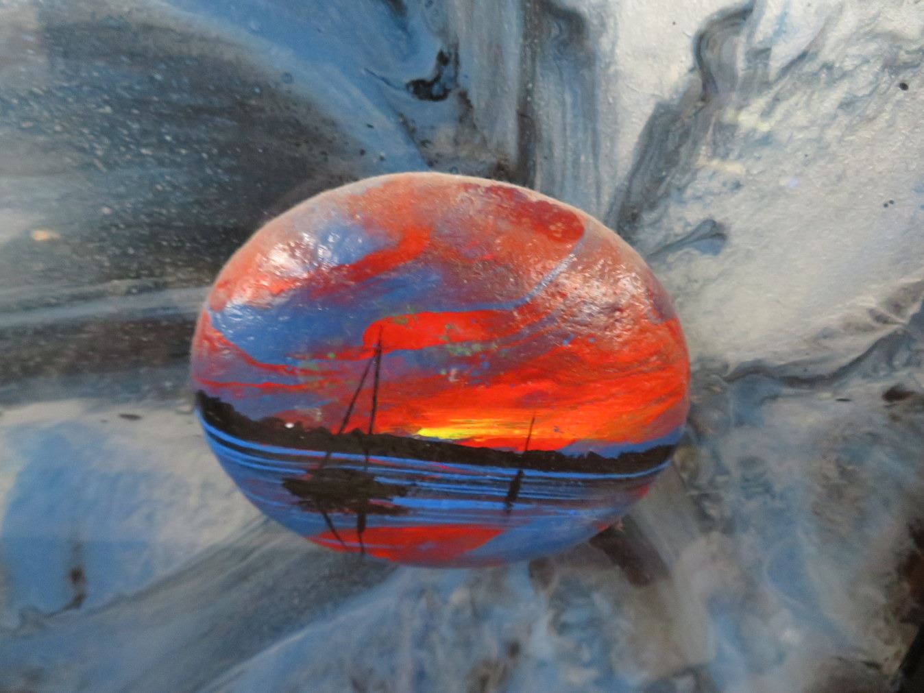 Framed Seascape on Rock Signed Howard - 20 x 20