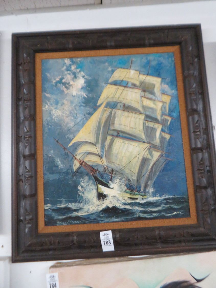 Framed Tall Ship On Board - 33" x 28"