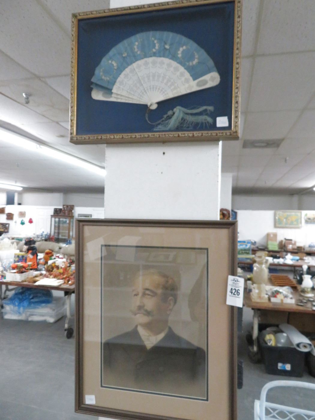 Framed Vintage Portrait, Shadowbox w/Oriental Fan