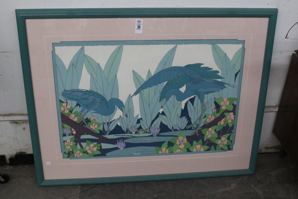 Framed Wall Art 2 Herons w/Frog - 36" X 48"