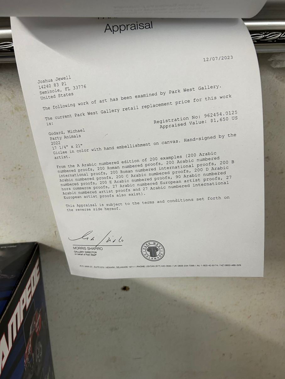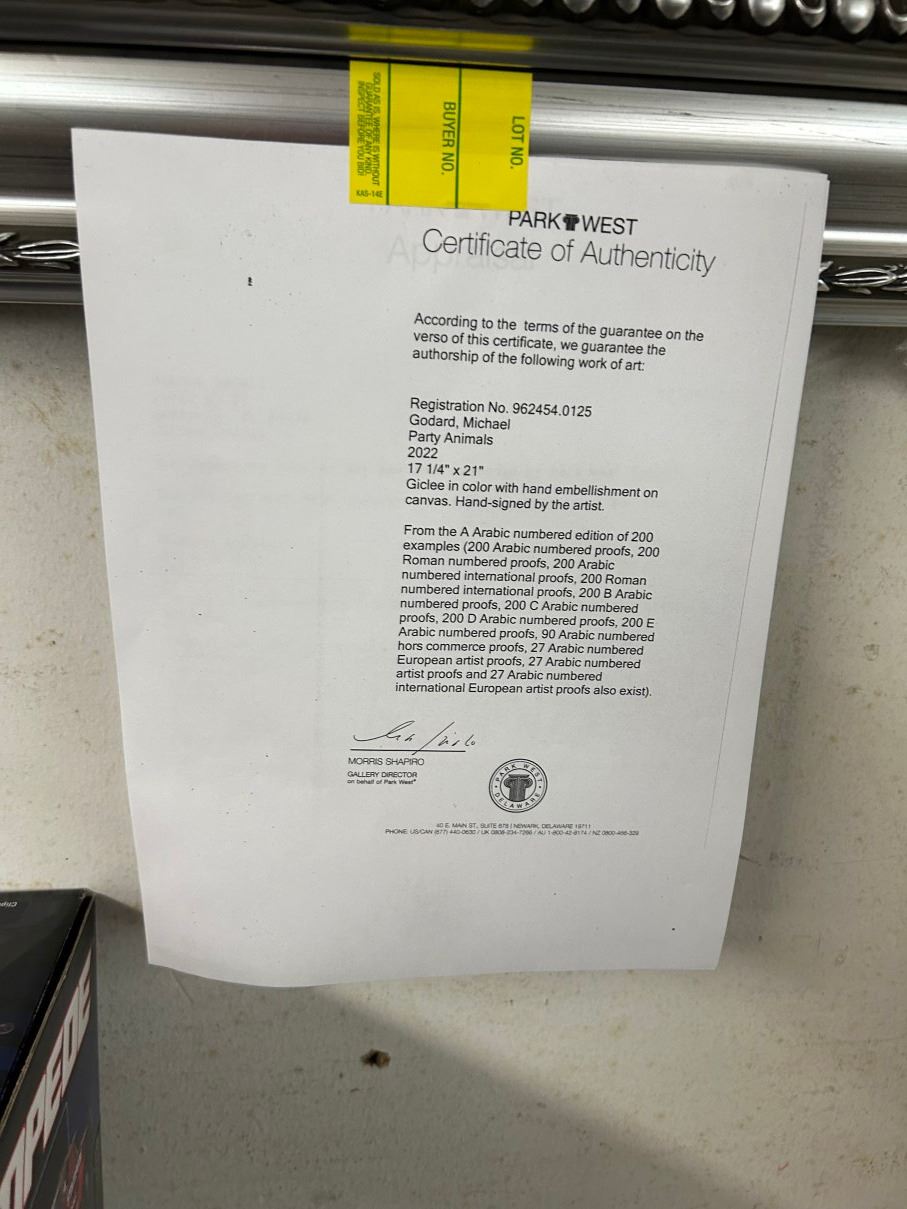 Framed Wall Art Party Animals by Gordard Original COA - Appraisal In Office