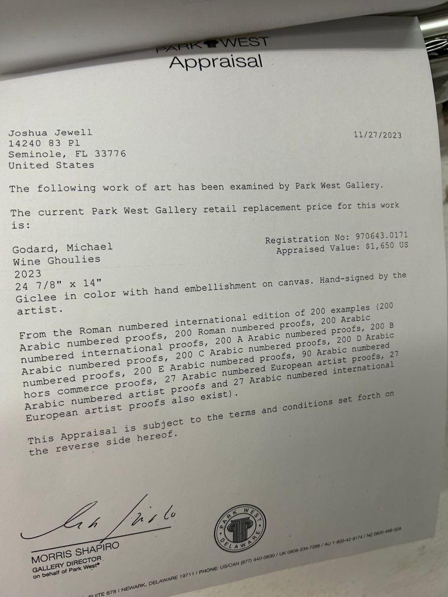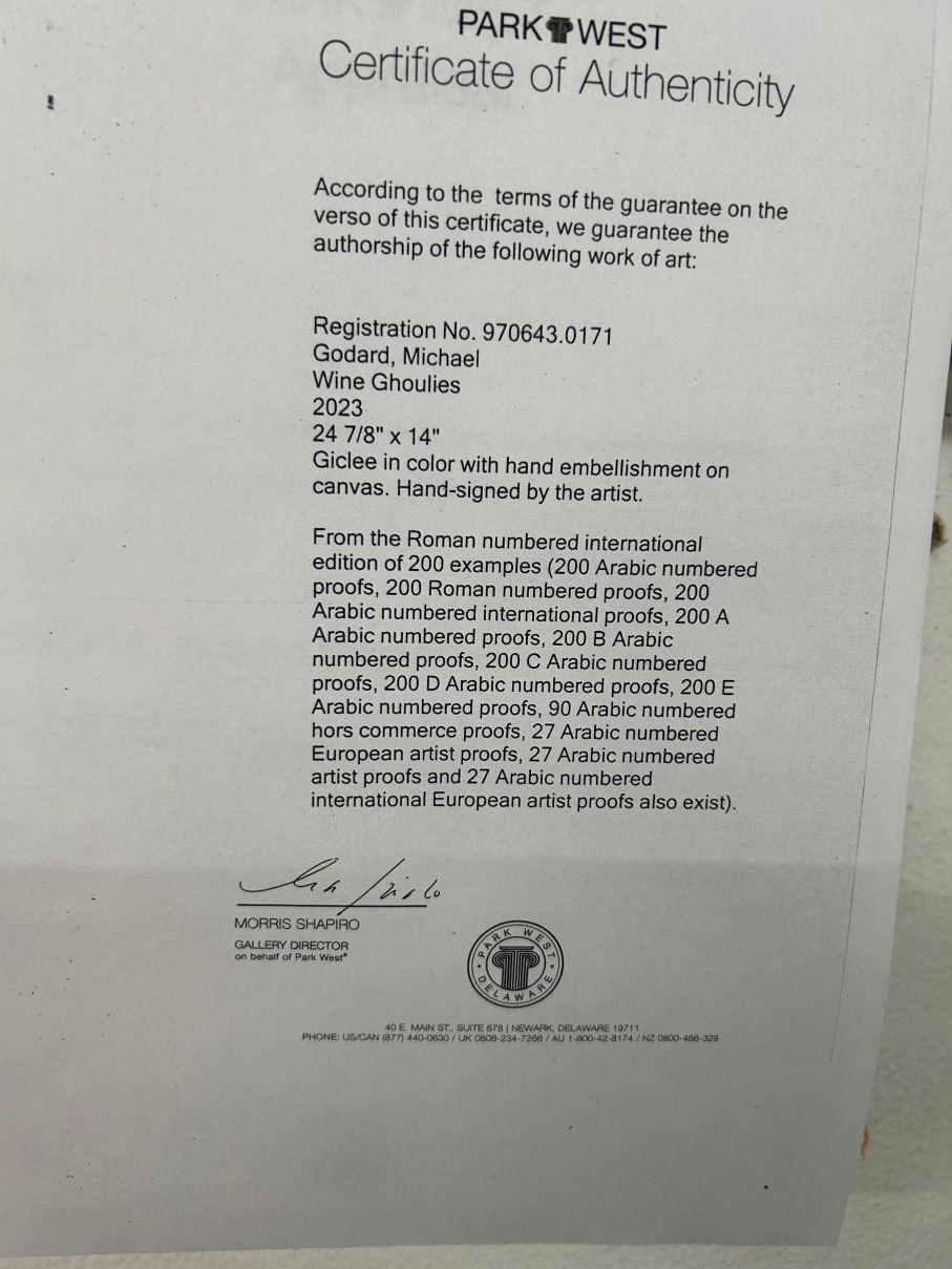 Framed Wall Art Wine Goules by Michael Gudard Original COA w/Appraisal In Office