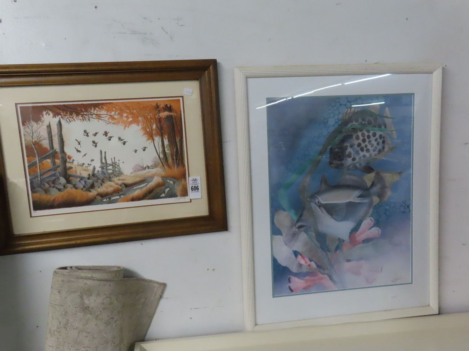 Framed Wall Art of Fish, Birds, Gathering - 3