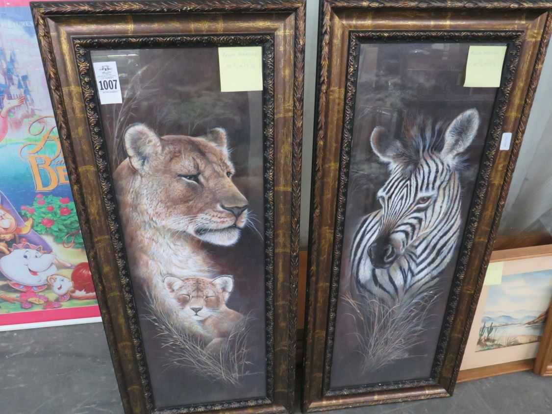 Framed Zebra/Lion Wall Art Signed Mannine - Pair