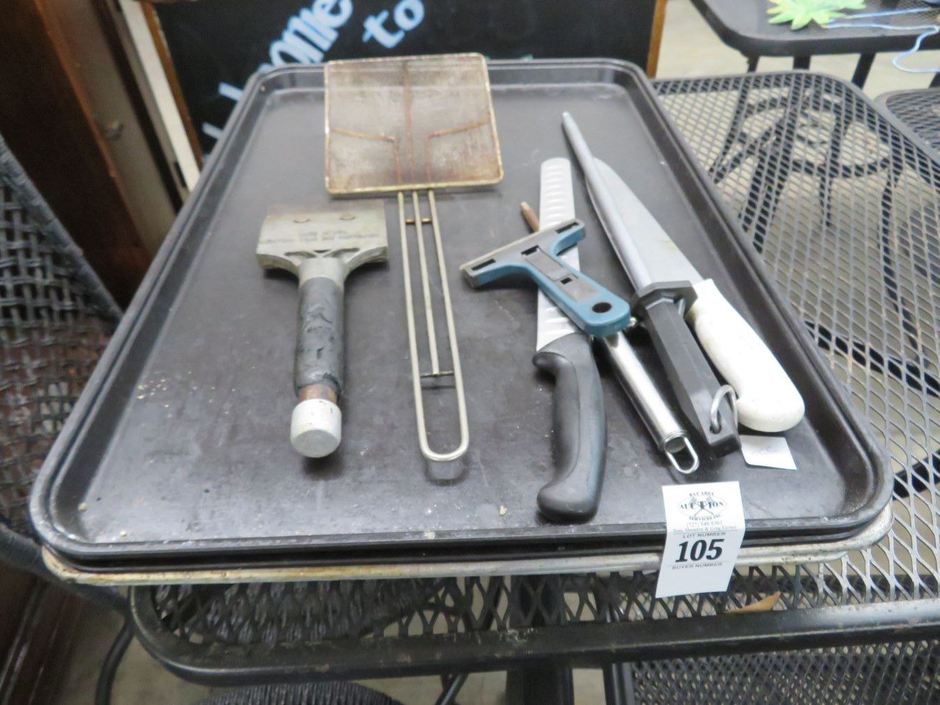 Full Sheet Pans 4, Knives, Sharpener, Shifter, Scraper