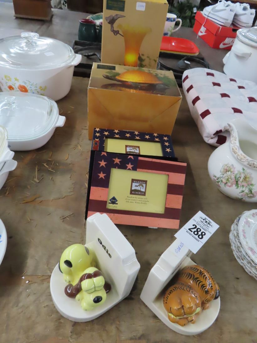 Garfield Bookends, Art Glass Accent Lamps, Picture Framed