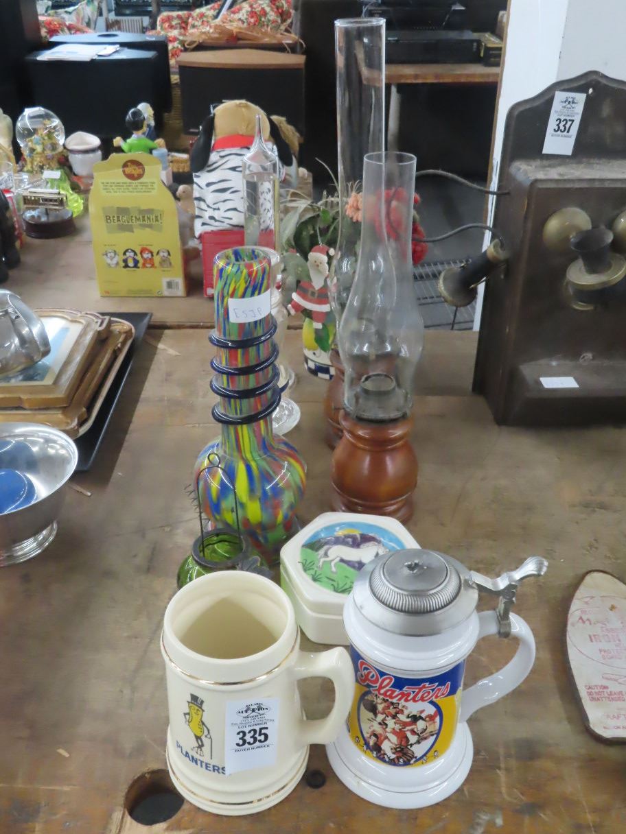 Gas Candles (2), Planters Beer Mug, Asst. Glass Containers