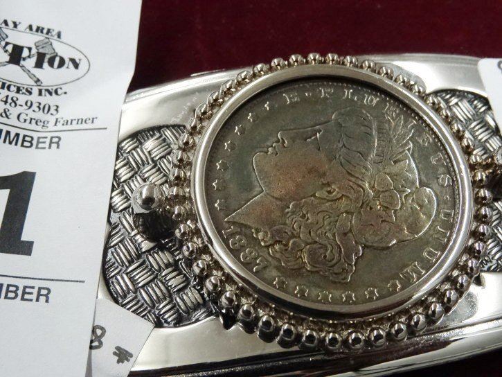 Genuine 1887 Silver Morgan Dollar In A Belt Buckle