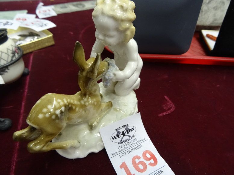 German Marked Porcelain Cherub & Deer