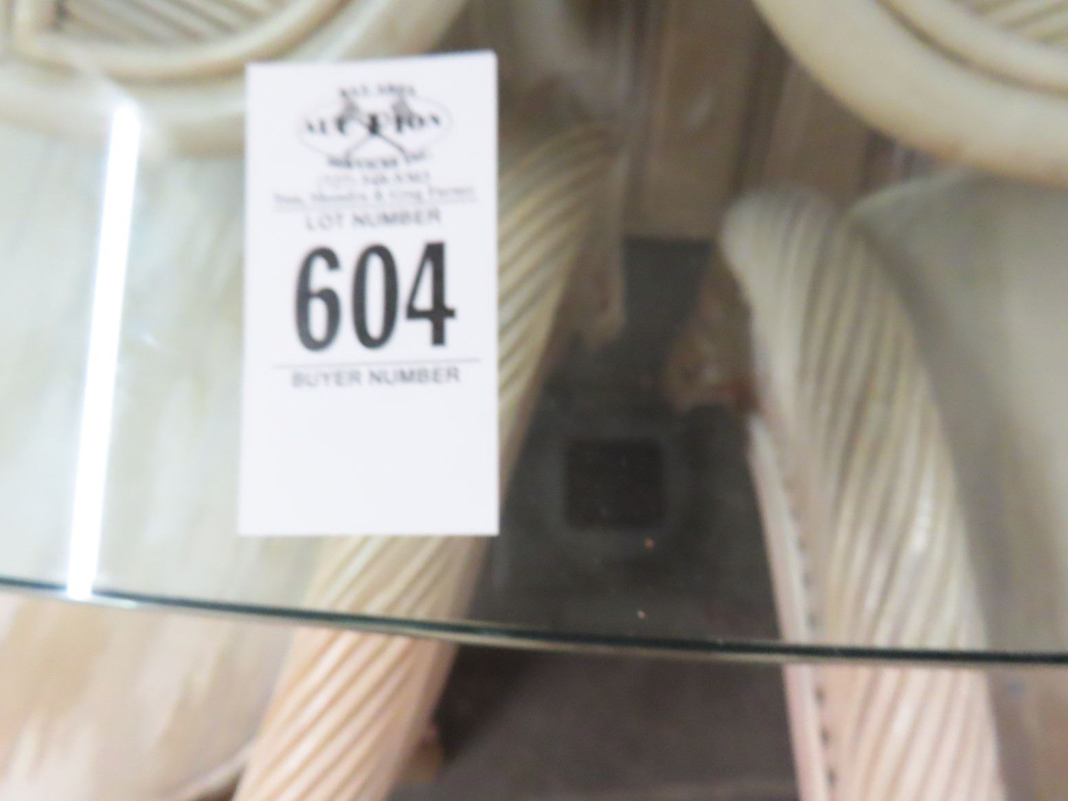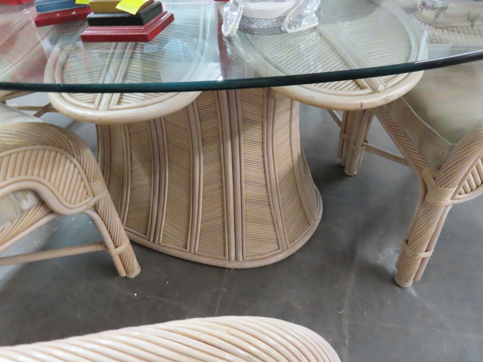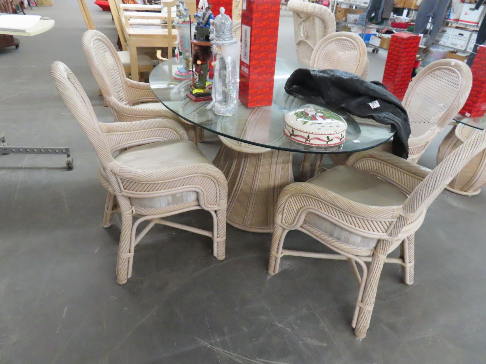 Glass Top Rattan Oval Dining Table w/6 Rattan Chairs