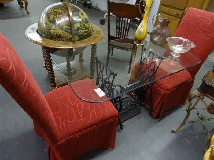 Glasstop Table & 2 Chairs - Singer Tredle Base